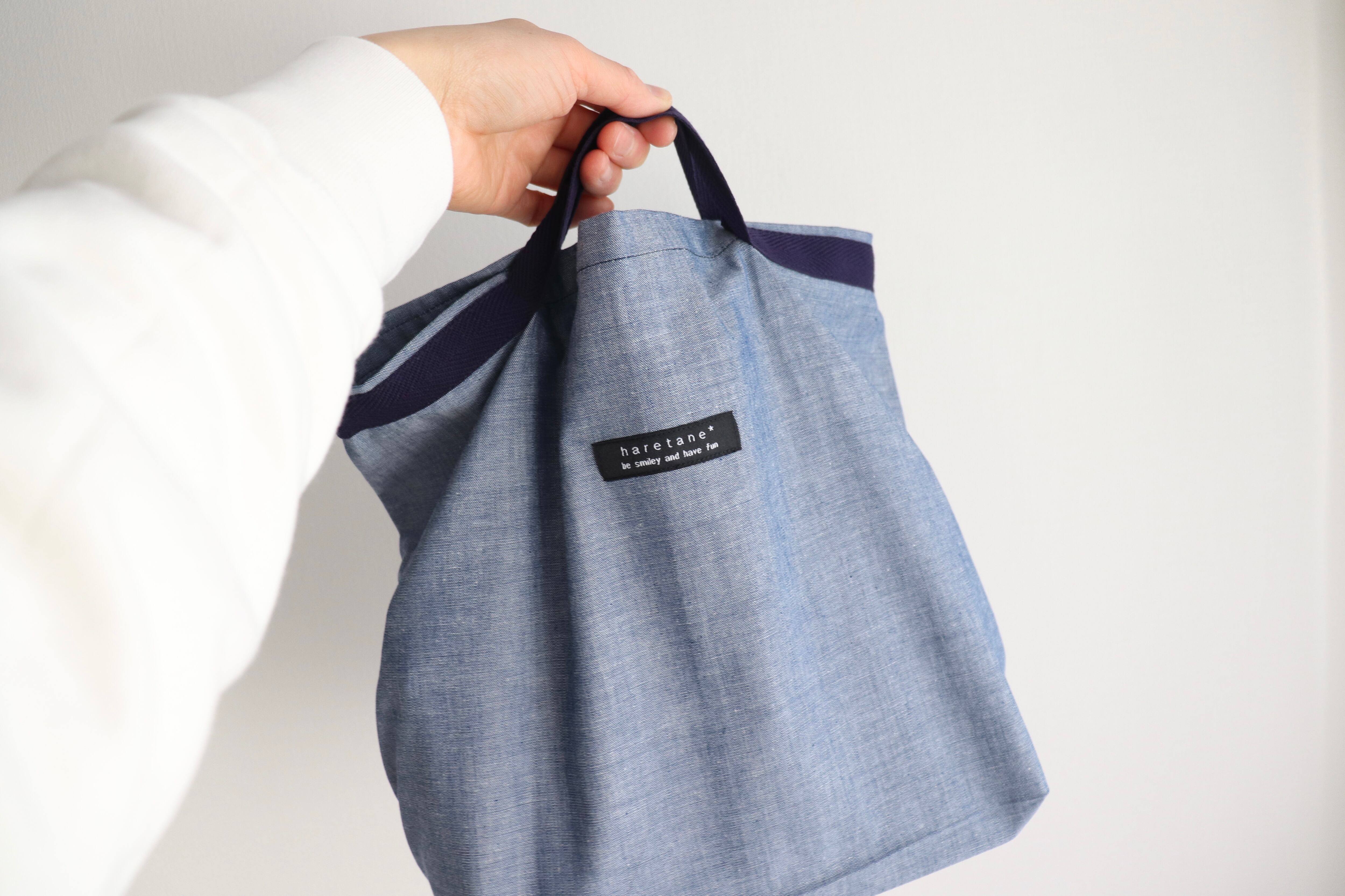 1枚仕立てで作ったかさばりにくいエコバッグです